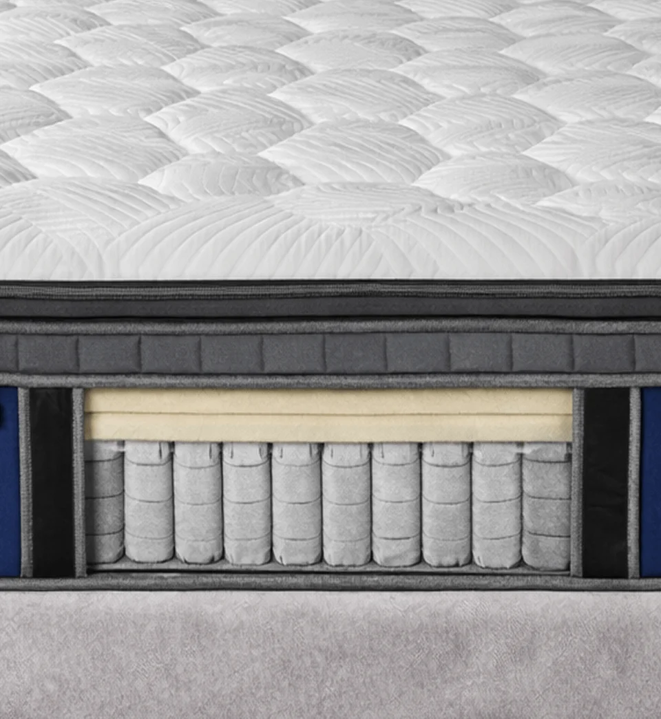 Together, these layers form a hybrid comfort system that adapts intelligently to your body — relieving pressure points, supporting spinal alignment, and offering consistent comfort over time.